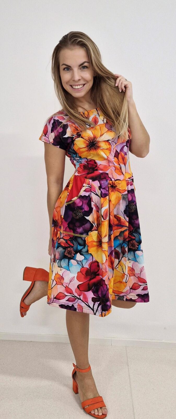 Dámské áčkové šaty, které mají jednoduchý střih, který sluší každému. Šaty lze nosit s páskem, ale i bez něj.