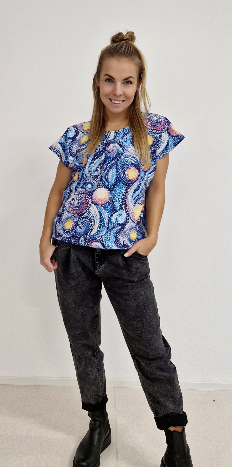 Dámské tričko s výstřihem do V. Překřížení na prsou Vám udělá krásný dekolt a díky překřížení, lze tričko použít i jako kojící.