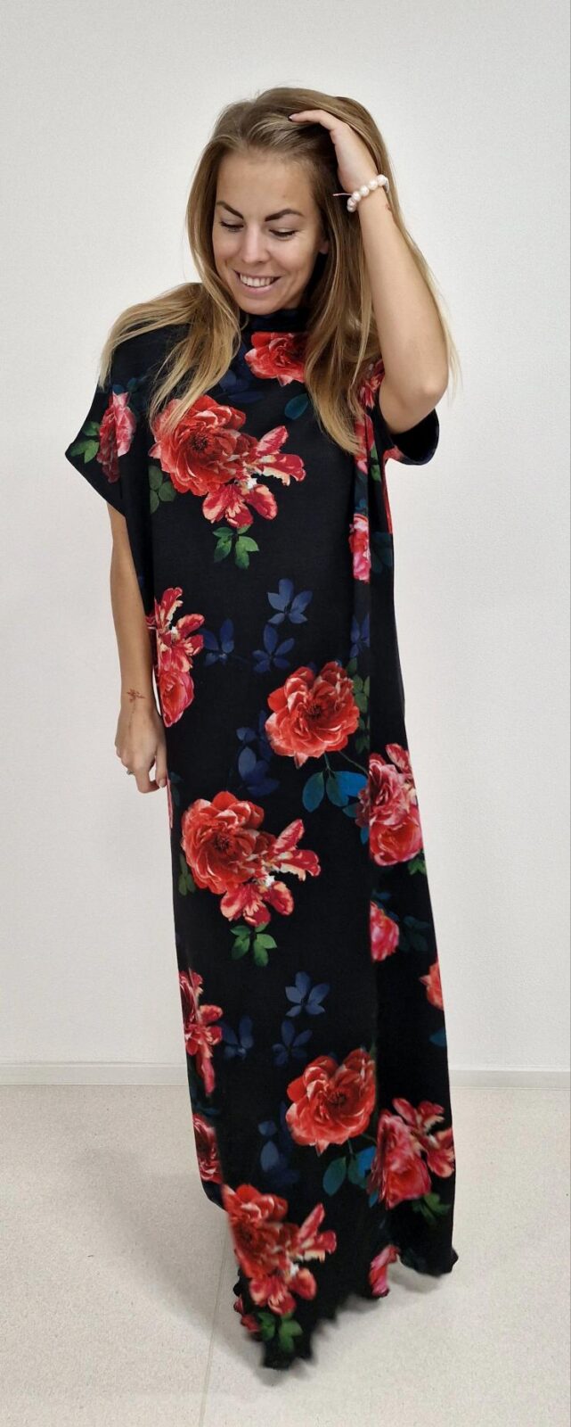 Délka šatů 148 cm, obvod hrudníku do 130 cm, obvod pasu do 125 cm, obvod sedu do 140 cm. Vhodné i pro velikosti 36 – oversize 🙂