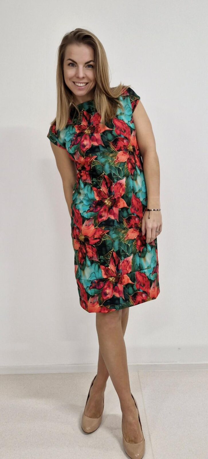 Šaty jsou ušité z 45% polyesteru 50% bavlna a 5% elastanu – jedná se o příjemnou pleteninku.