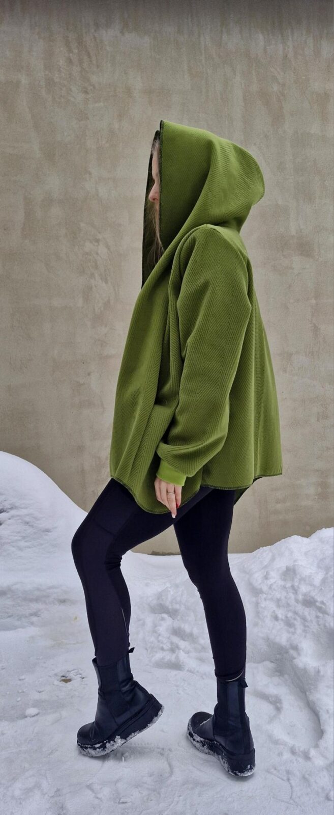 Složení: 100% polyester jedná o hřejivou kabátovinu, která je božská na těle a krásně hřeje.