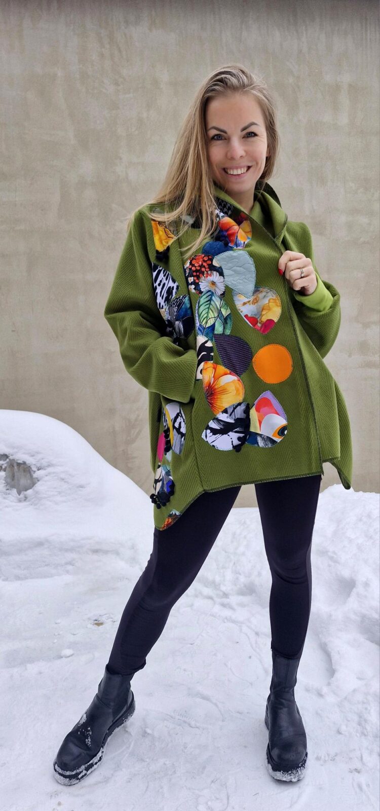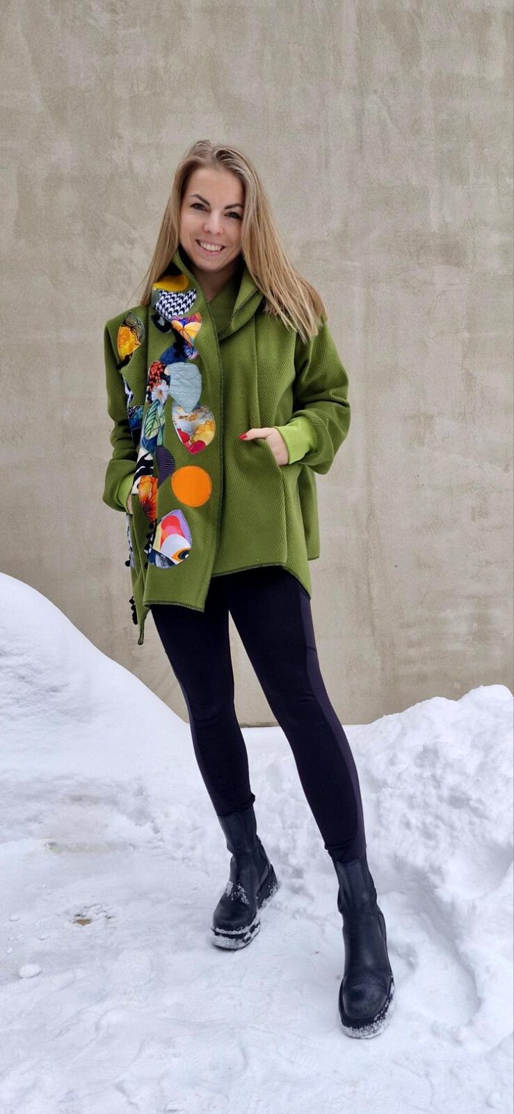 11 měsíců není, ale její energie je právě tady, v kabátku. Každičký kousek vzala do ruky. Nikde takový podobný kabátek na světě není, nechodí.