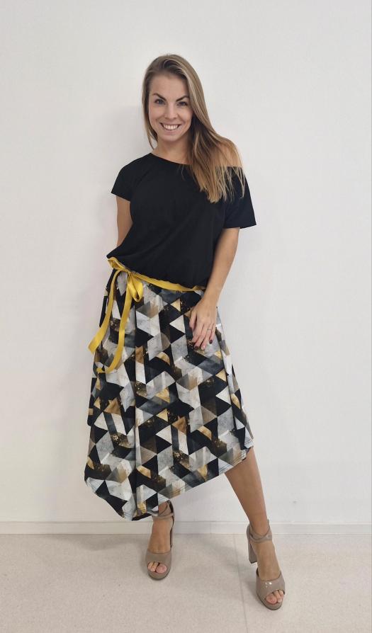 Dámská vesta, zapínaná na klipsíky, řešená tak, že ji lze nosit oboustranně.