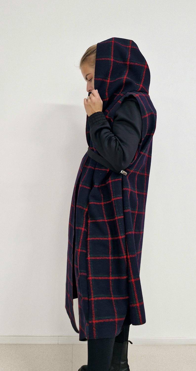 Dámská vesta s kapucí a kapsami.