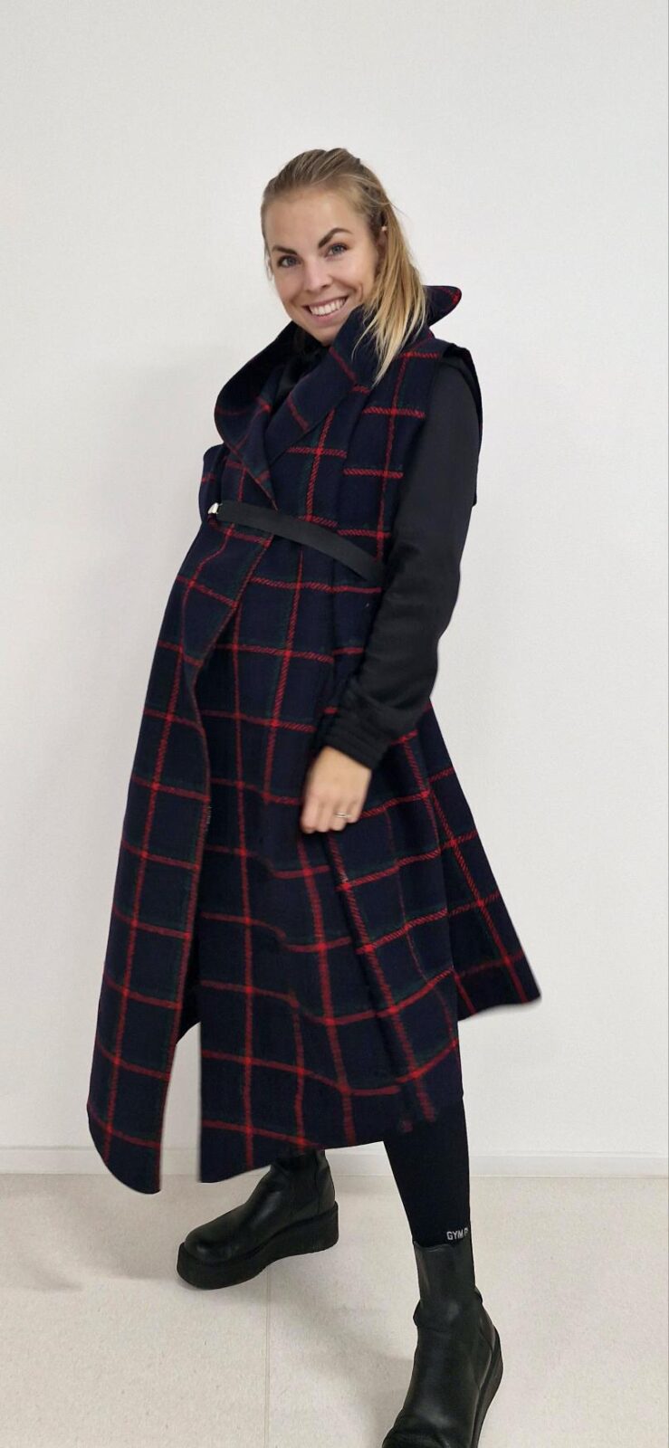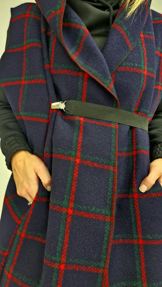 Dámská kabátová vesta Modrá s červeno/zelenými pruhy