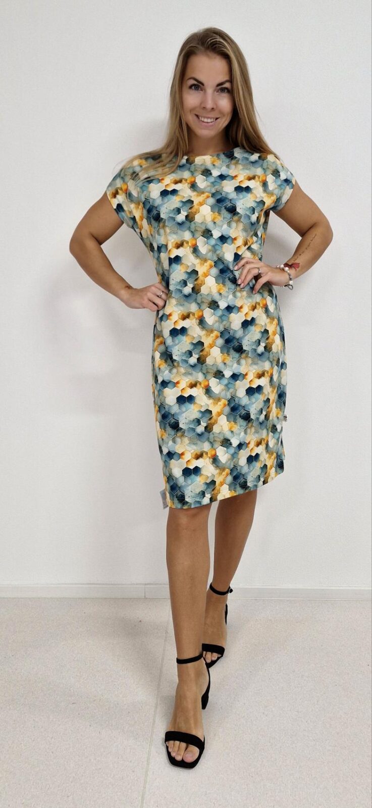 Dámské, áčkové šaty s krátkým, přinechaným rukávem s lodičkovým výstřihem. Lze nosit i jako tuniku k legínám, či kalhotám 🙂