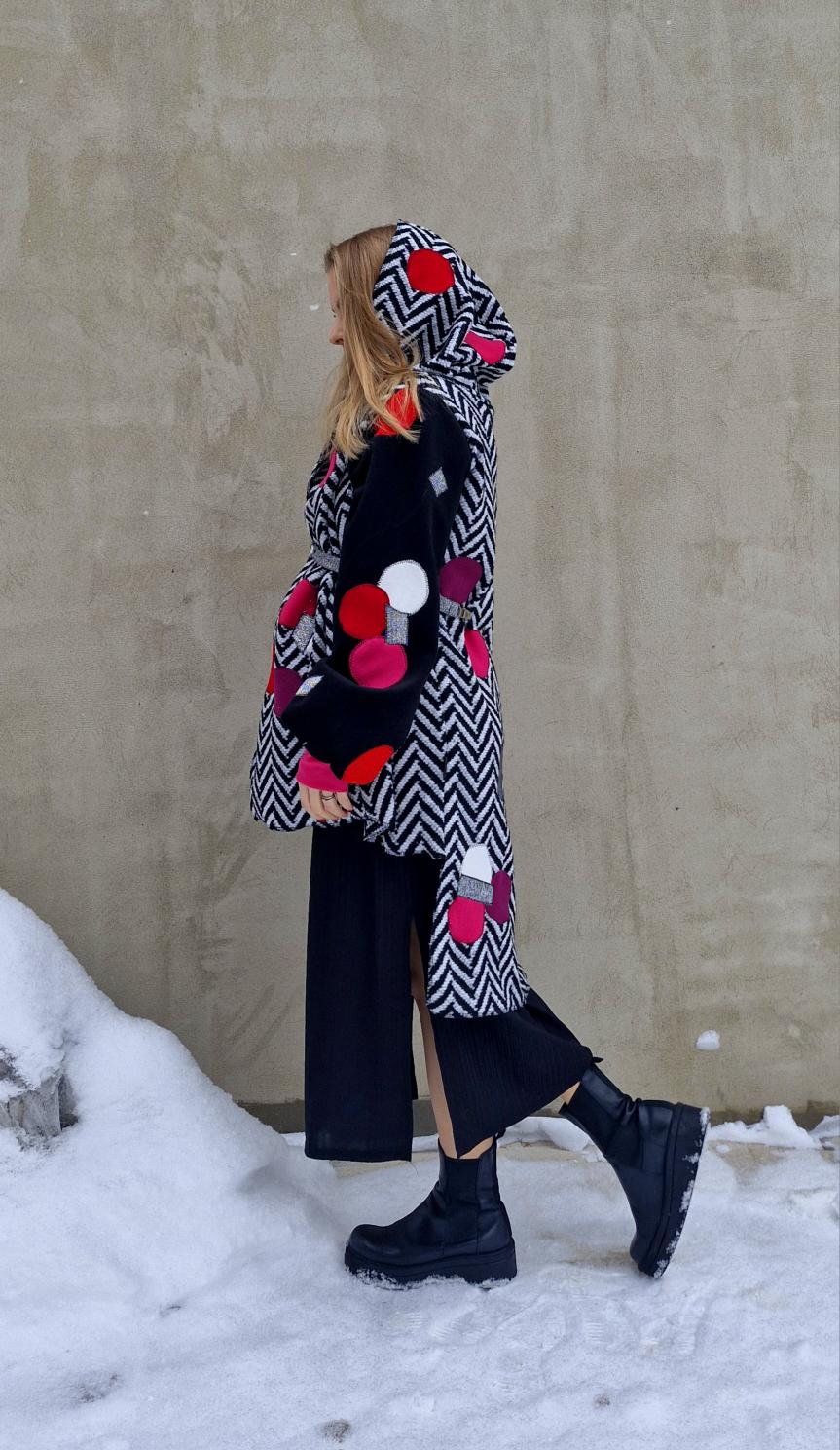 Šaty jsou ušité z bavlněné teplákoviny. Rukávy jsou zhotoveny z jemného micro fleecu, který krásně hřeje.