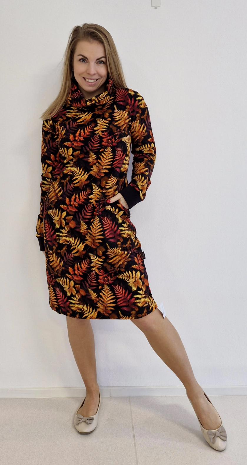 Šaty jsou ušité z bavlněné teplákoviny. Rukávy jsou zhotoveny z jemného micro fleecu, který krásně hřeje.