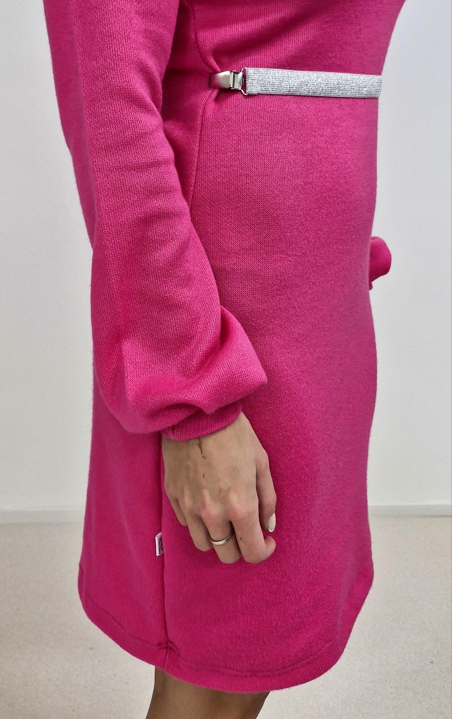 Dámské šaty s dlouhým balónkovým rukávem, v průkrčníku zhotoven límec.