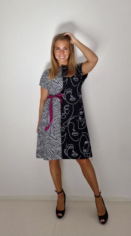 Dámské áčkové šaty s přinechaným, krátkým rukávem. Lodičkovým výstřihem.