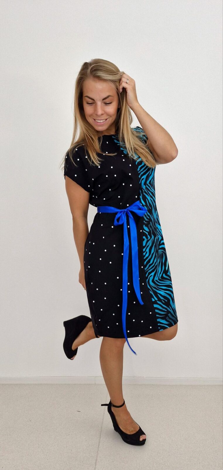 Dámské áčkové šaty s přinechaným, krátkým rukávem. Lodičkovým výstřihem.