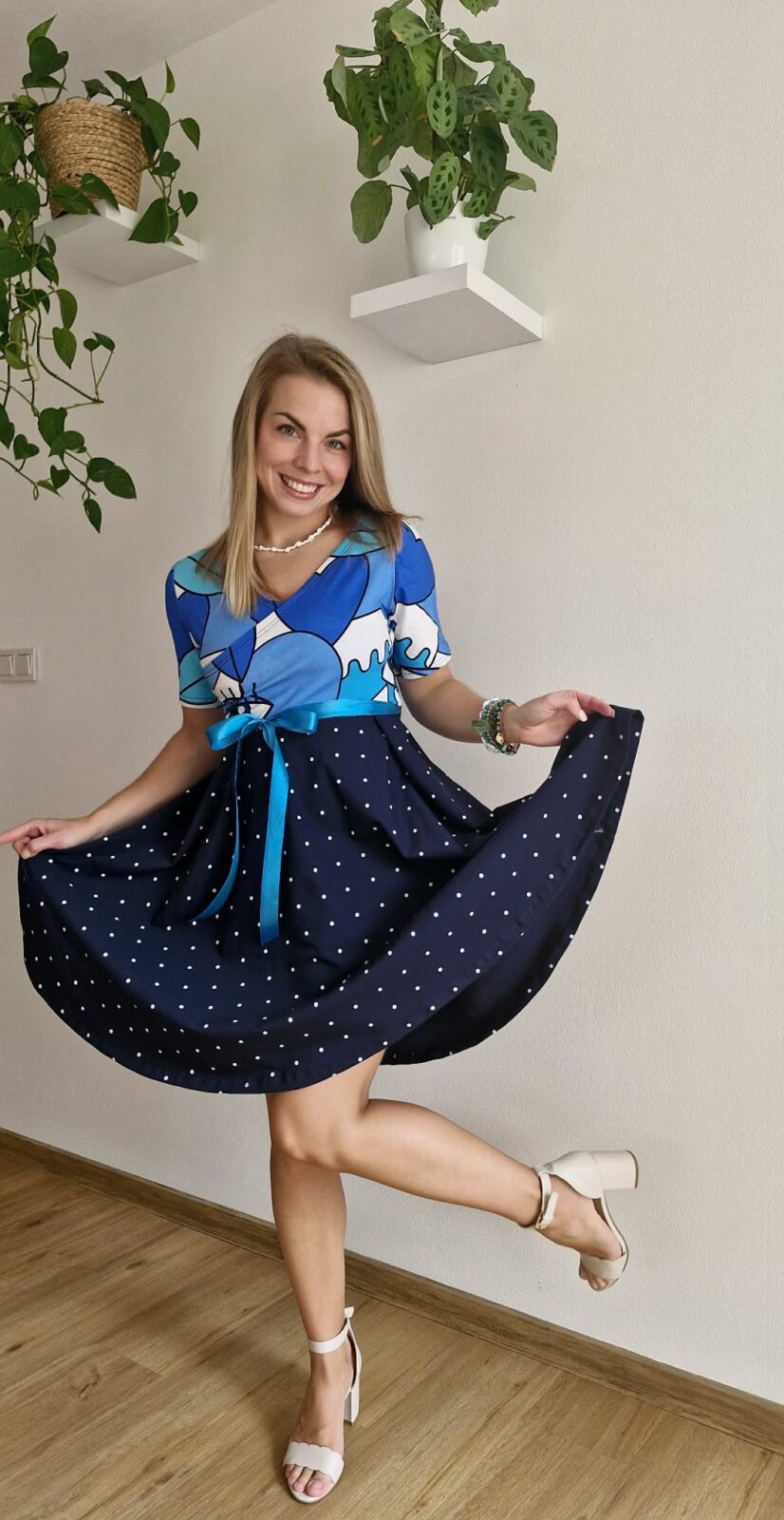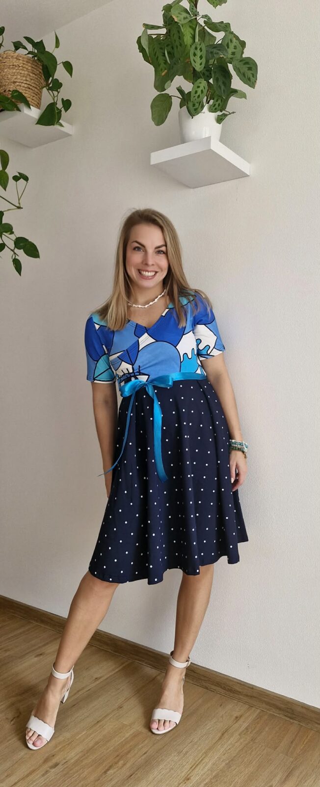 Šaty jsou ušité z 95% bavlny a 5% elastanu.