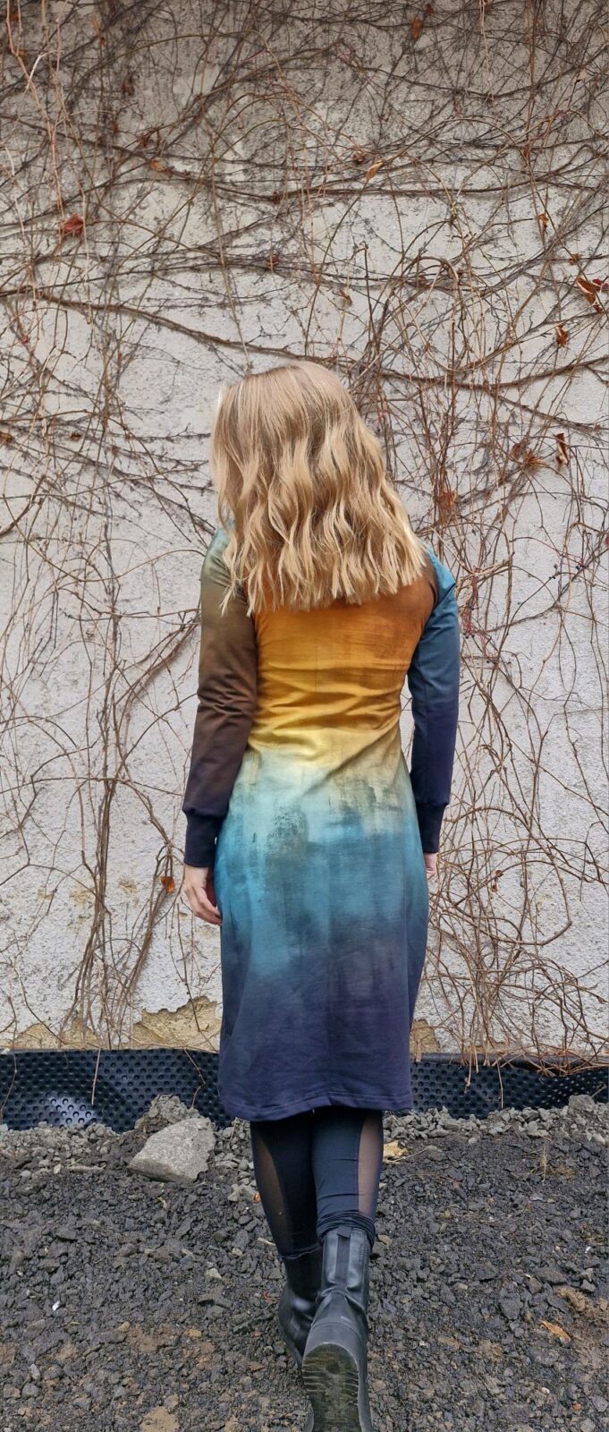 Délka šatů 102 cm, délka rukávů 60 cm, obvod hrudníku je 80-86 cm, obvod pasu 65-75 cm, obvod sedu 95 – 110 cm.