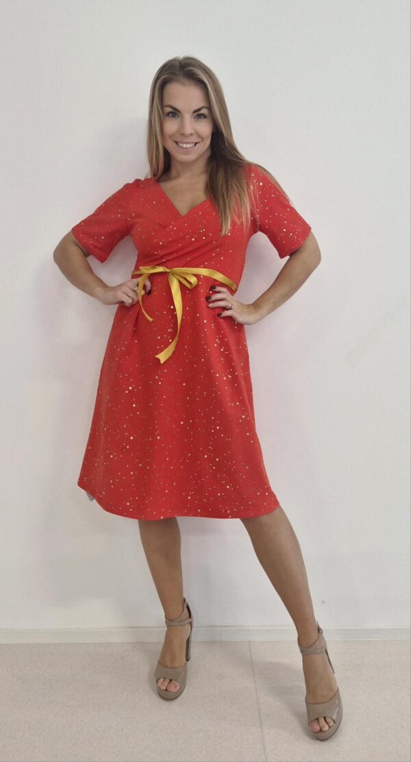 Dámské šaty s překřížením na prsou, půlkolovou sukní s krátkým rukávem. Vhodné i pro maminky, které kojí 🙂