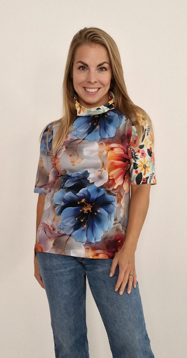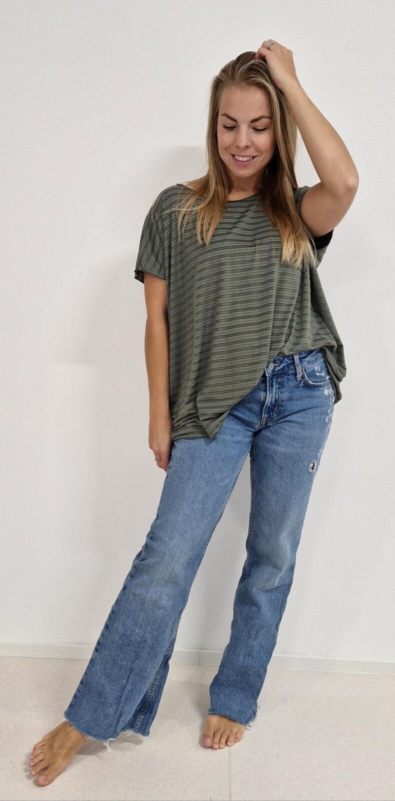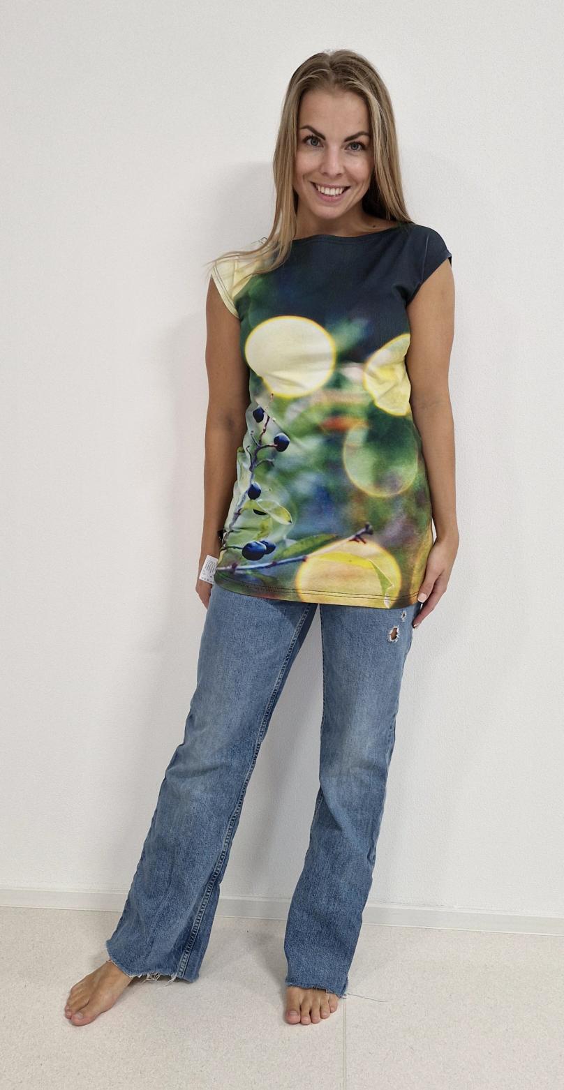 Dámské tričko s nápletem s přinechaným nápletem v dolním okraji. Rukáv je přinechaný.