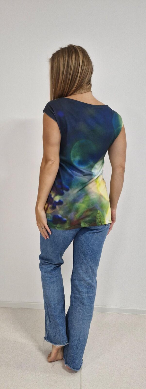 Dámské tričko s přinechaným, krátkým rukávem ušité z bavlněného úpletu. Jedná se o AUTORSKOU LÁTKU – ORIGINÁL!