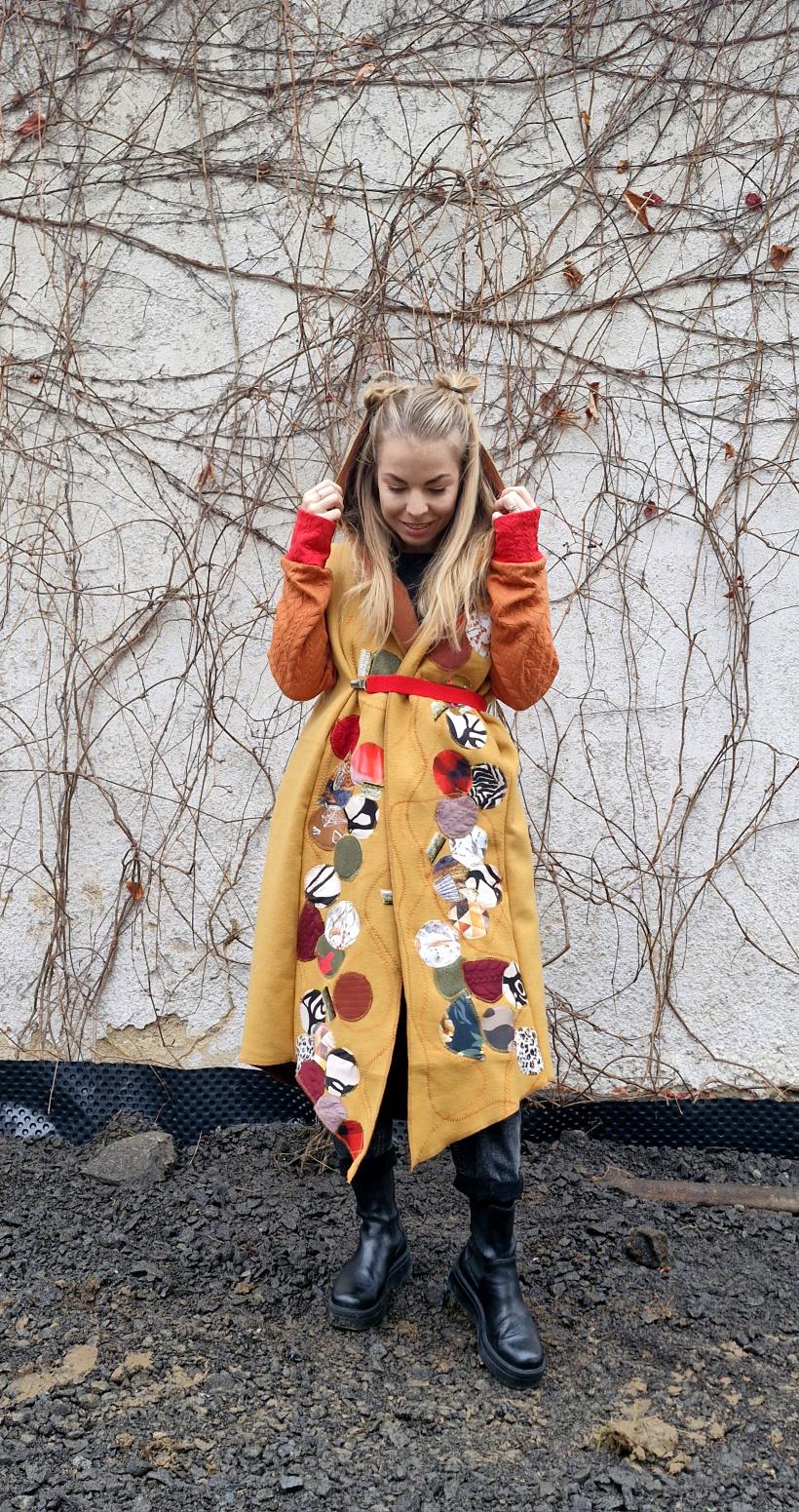 Díky cípům, které směřují podél boků, kabátek krásně zeštíhluje.
