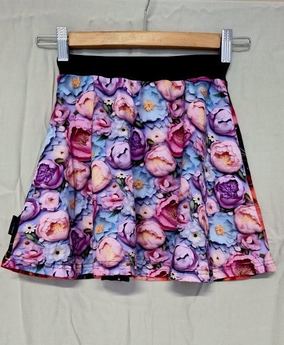 Délka sukně 36 cm včetně lemu. Obvod pasu je 38 – 58 cm.