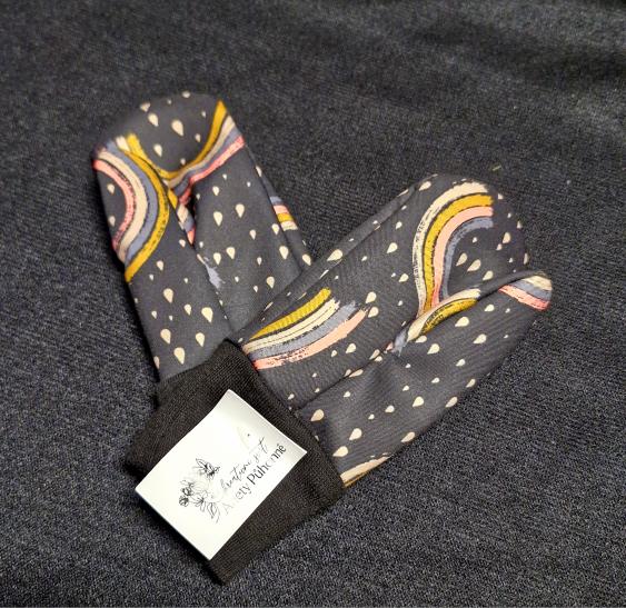 Dětské rukavice, ušité ze softshellu, který je třívrstvý, proto má uvnitř jemný teplý chloupek.